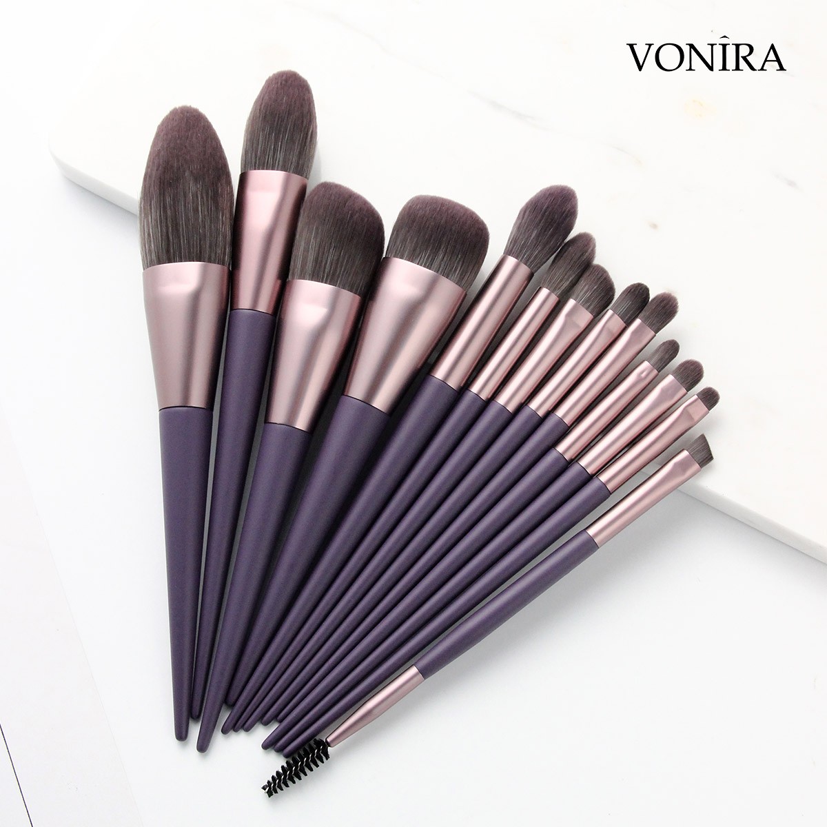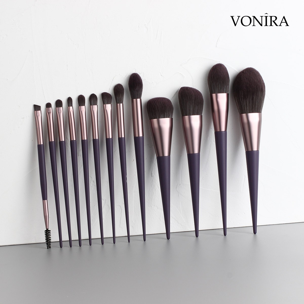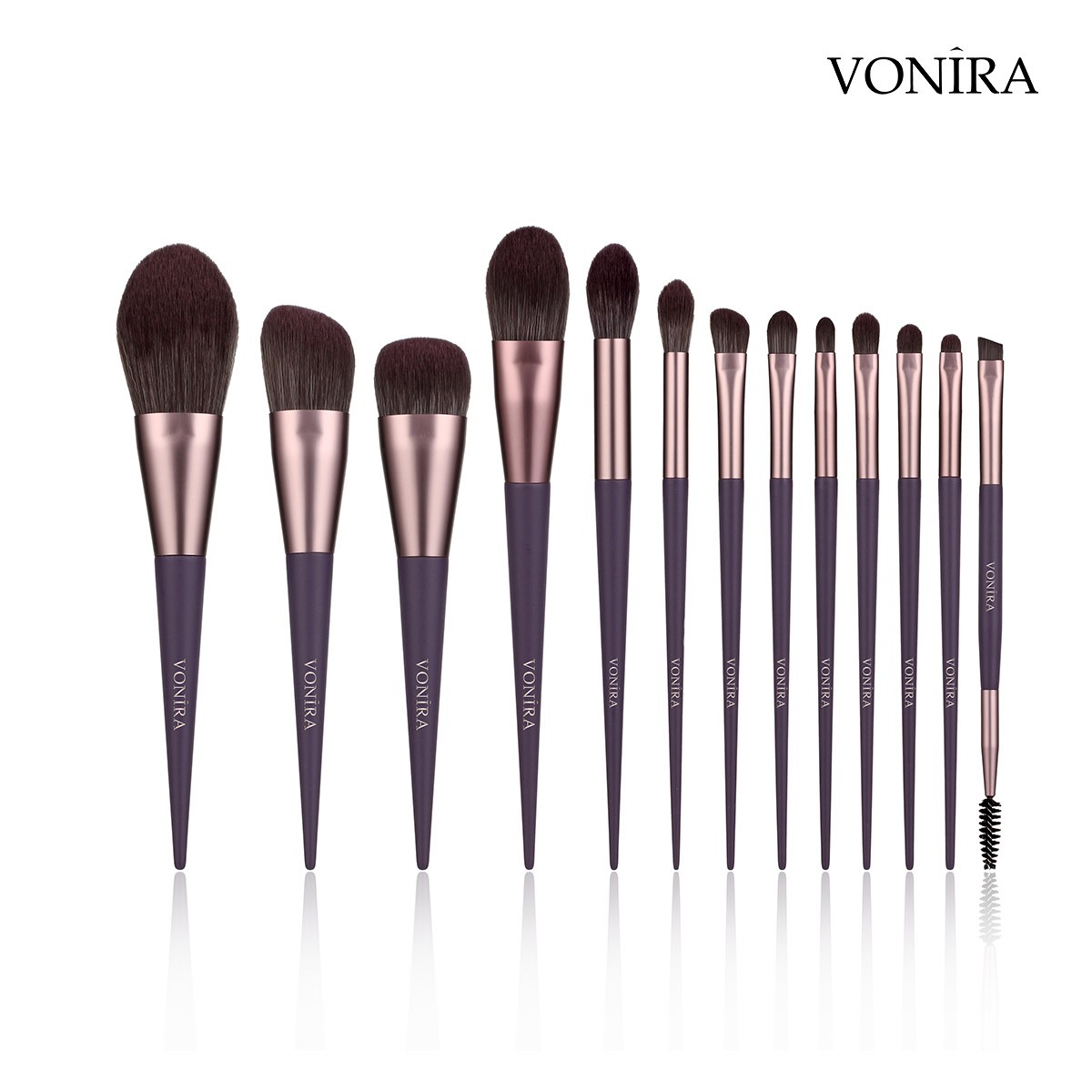 Vonira Best Selling 13PCS Purple Color Slim Tapered Shape Handle Soft Synthetic Hair Vegan Makeup Brushes Set Custom Logo Private Label Vegan Cosmetic Brush Set. details