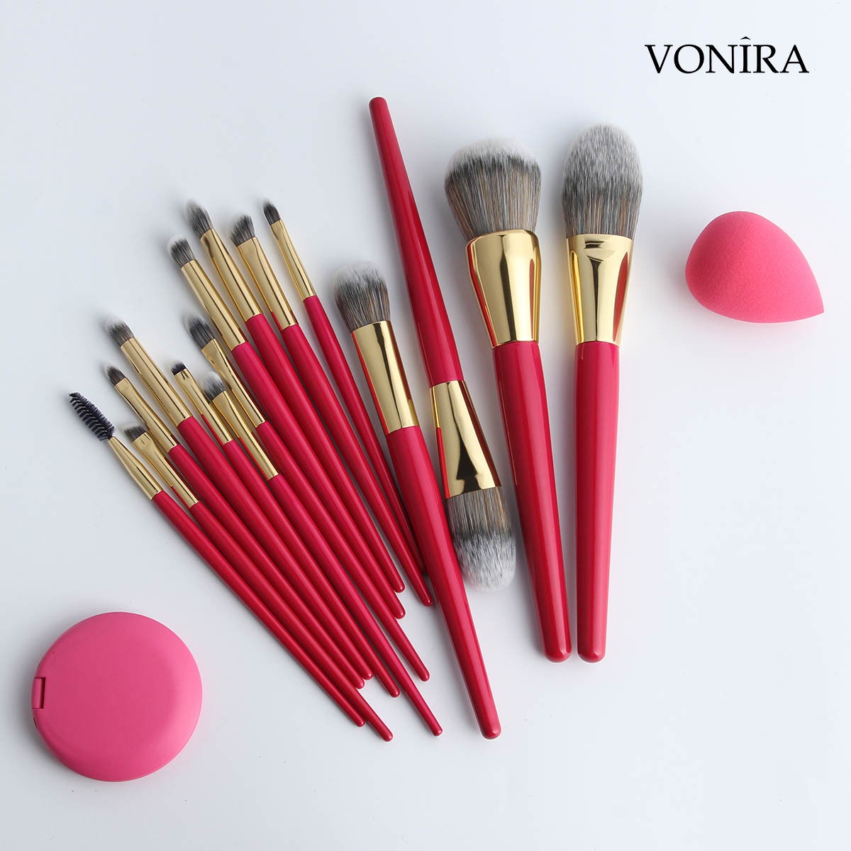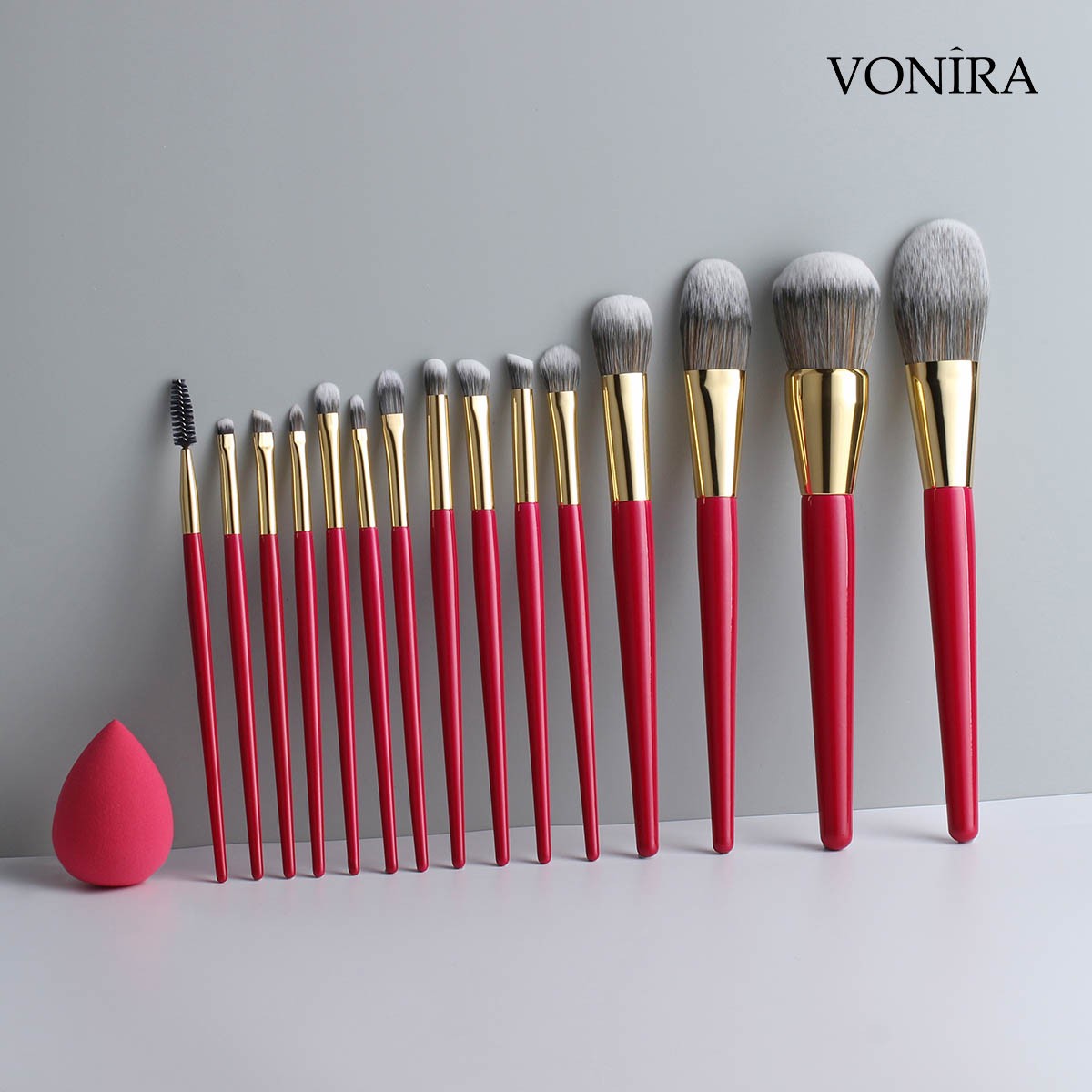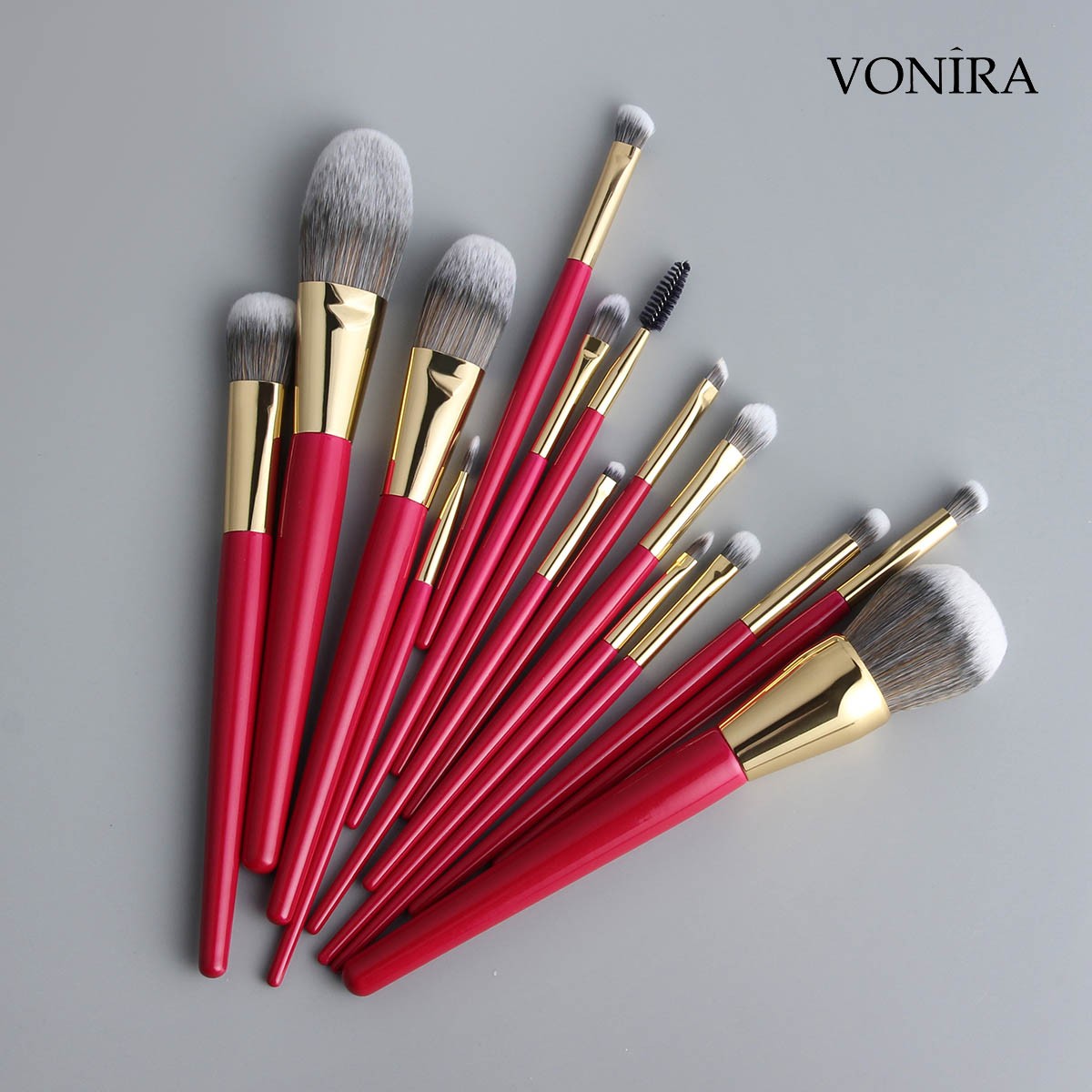 Best Manufacturer Vonira Beauty Direct Wholesale 15 Piece Professional Red Gold Color Makeup Brush Set With Custom Private Label Makeup Brushes Service To Create Your Own Brand Makeup Brushes Lines