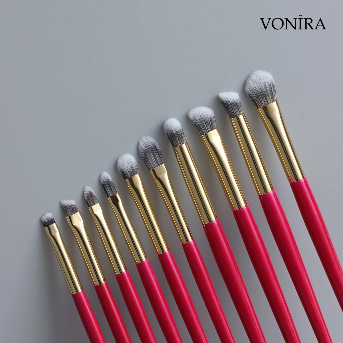 This fundamental collection of brushes, made from taklon PBT synthetic hairs, was developed by Vonira Beauty Makeup Brushes Factory to create a perfect and precise makeup application as well as a provide the artist with a high quality, non-shading, long-lasting selection of brushes.