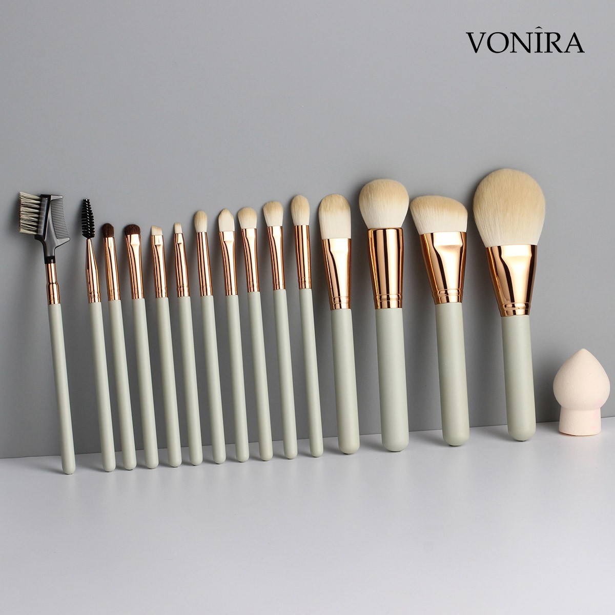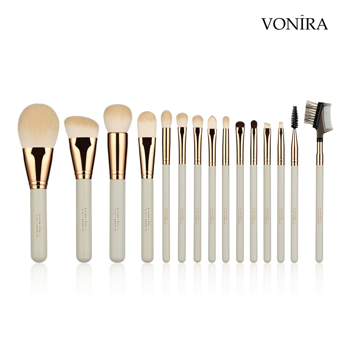 Makeup Brushes Set Manufacturer Vonira Beauty Professional Luxe Vegan Fibres Cosmetic Brushes Set (15-Piece) details