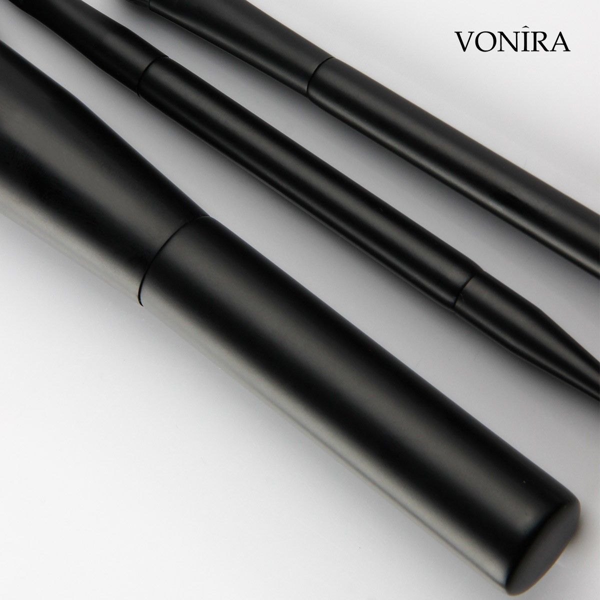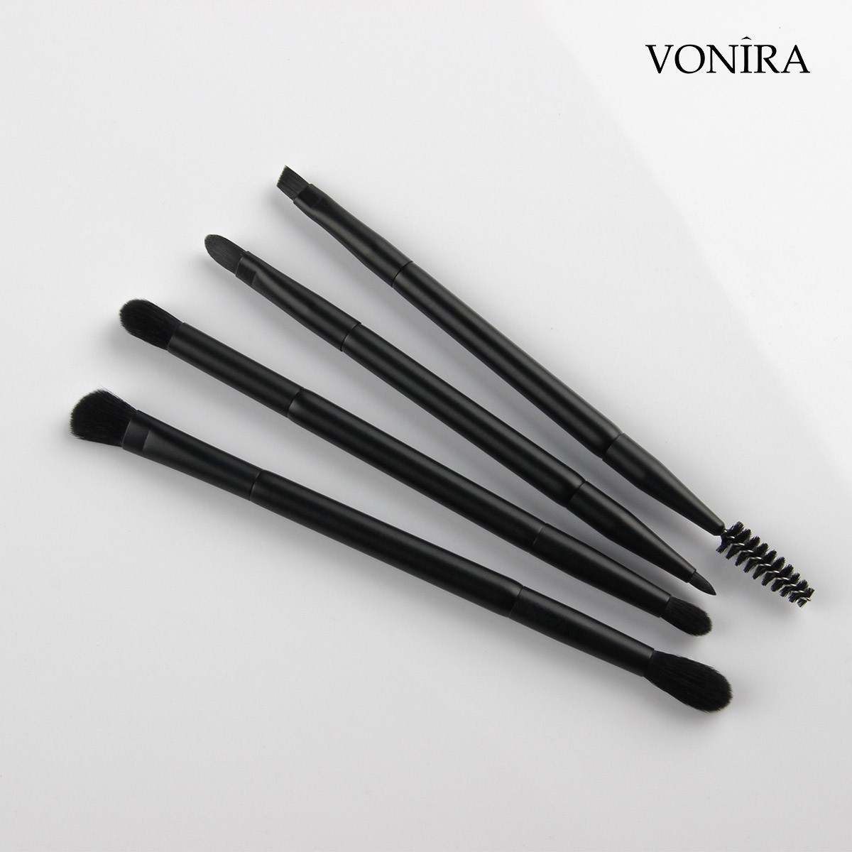 Vonira Beauty 7 Piece Professional Gorgeous Dual Ended Cosmetic Brush Set With Matte Black Makeup Brushes Ferrule Handle Synthetic Hairs OEM details