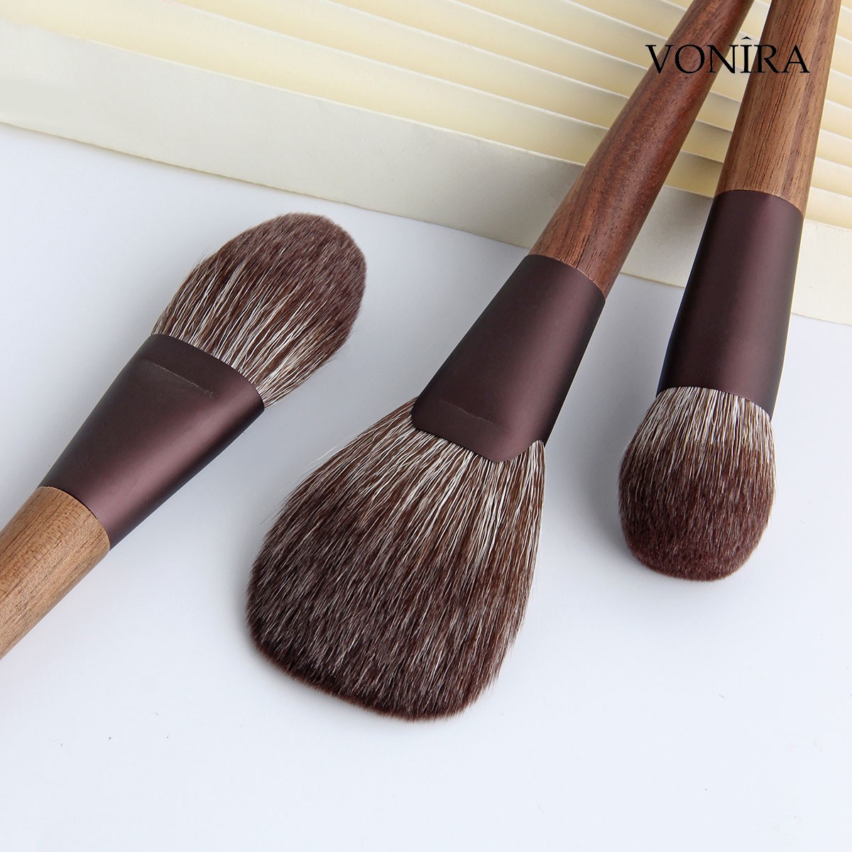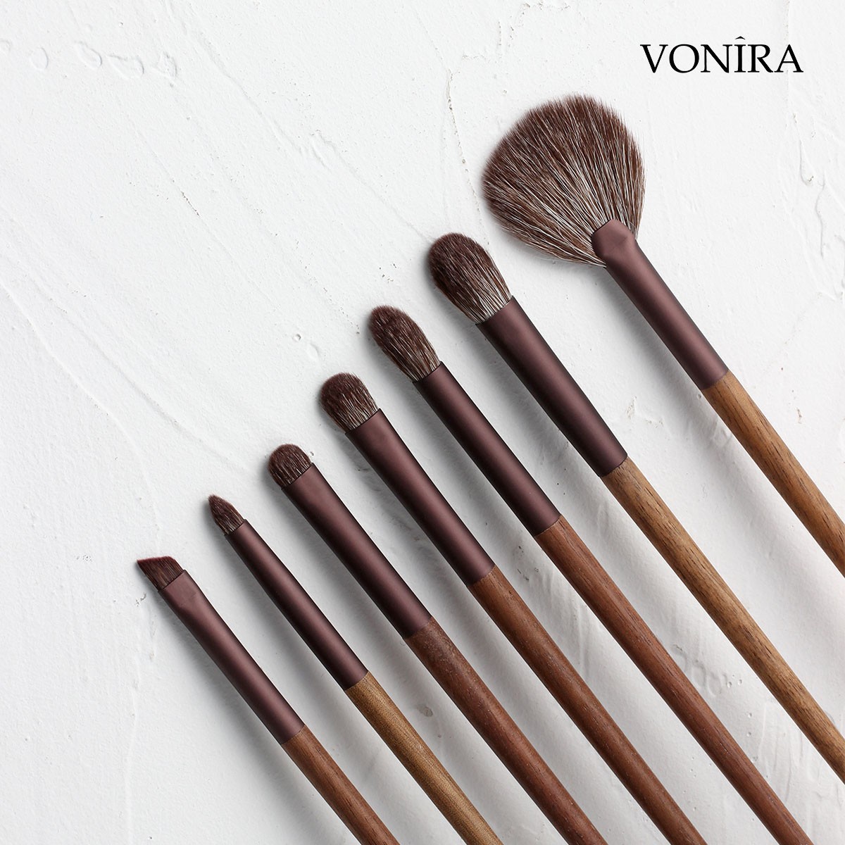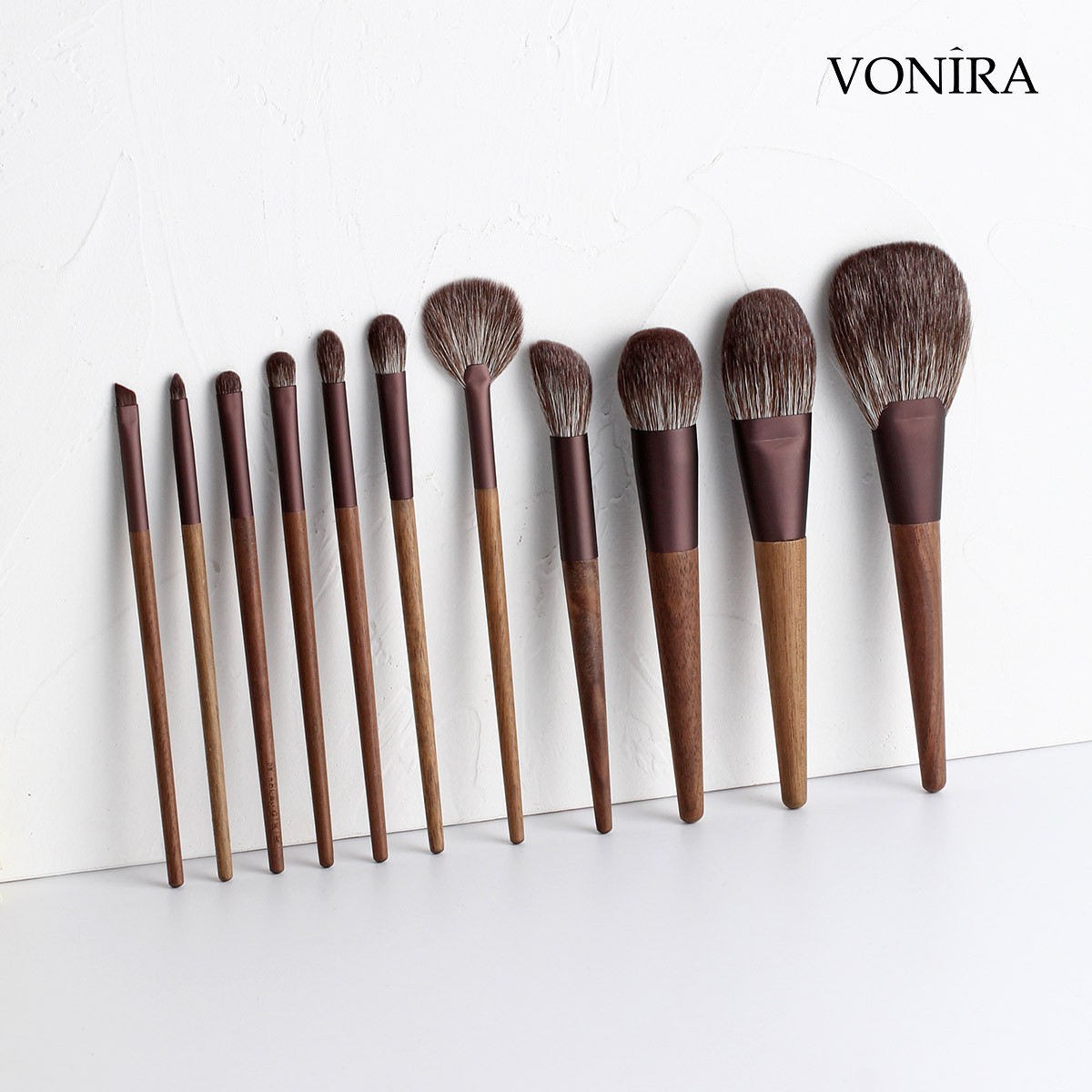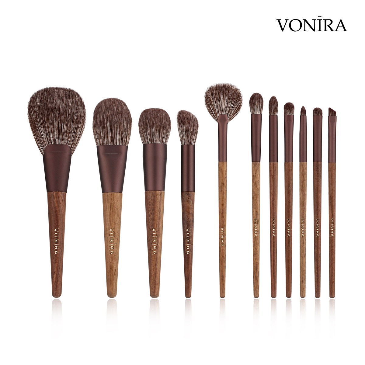 Vonira Beauty Luxury Handcrafting Natural Goat Hair Professional Makeup Brushes Set With Walnut Wooden Handles Your Own Brand Name Private Label Available details