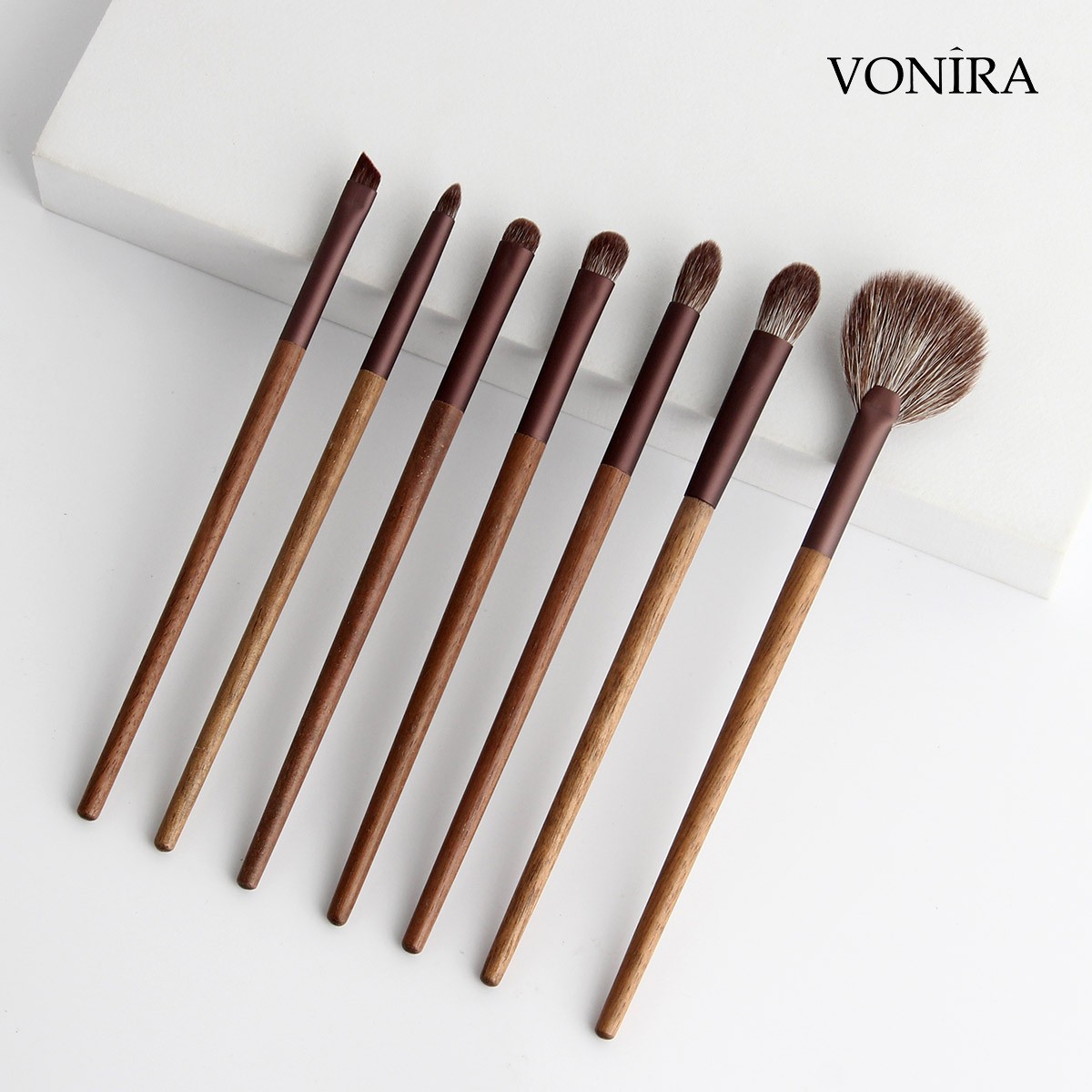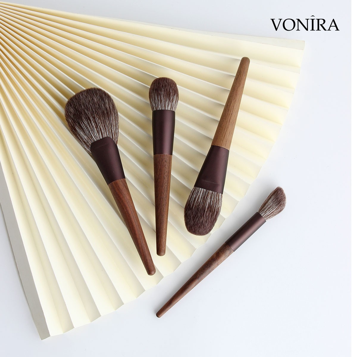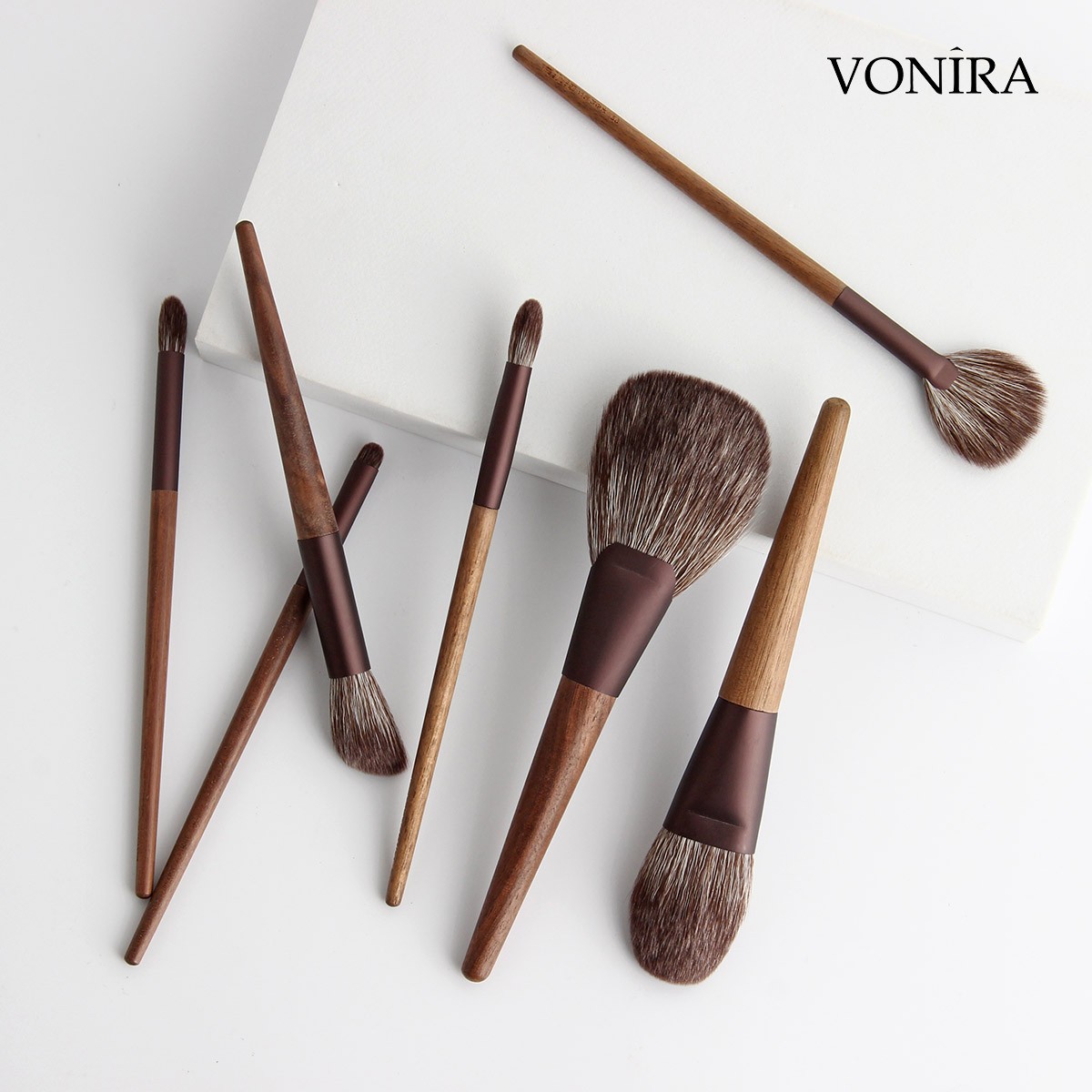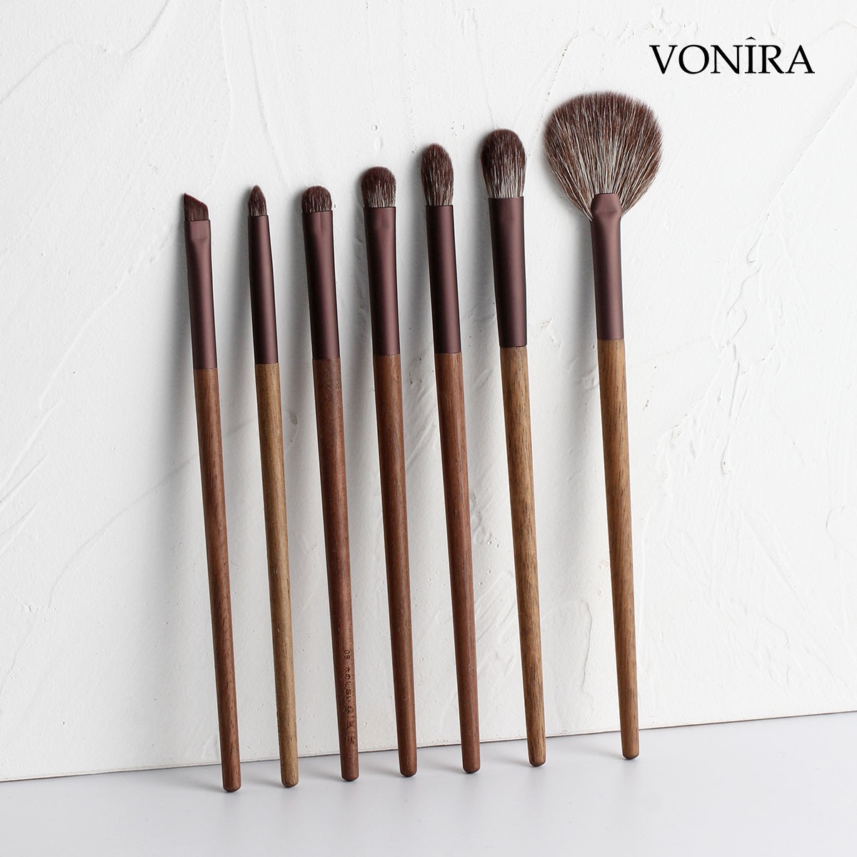 Vonira Beauty Luxury Handcrafting Natural Goat Hair Professional Makeup Brushes Set With Walnut Wooden Handles Your Own Brand Name Private Label Available details