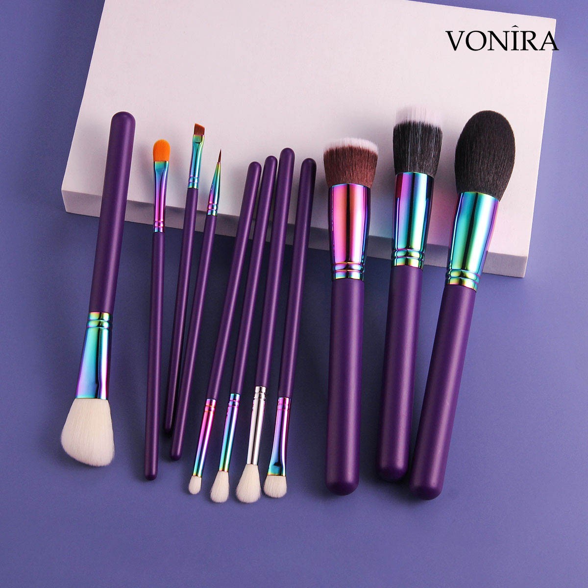 Vonira Beauty Luxury Holographic 11pcs Soft Makeup Brushes Set Professional Gradient Make up Brushes Kit With Private Label Logo details