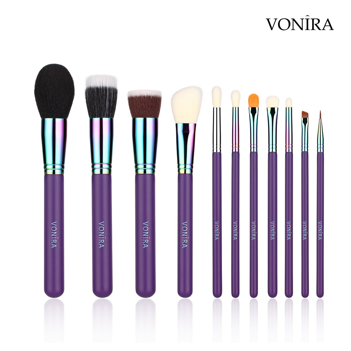 Best Manufacturer Vonira Beauty Luxury Holographic 11pcs Makeup Brushes Set Private Label Professional Make up Brushes Kit With Custom Logo Name