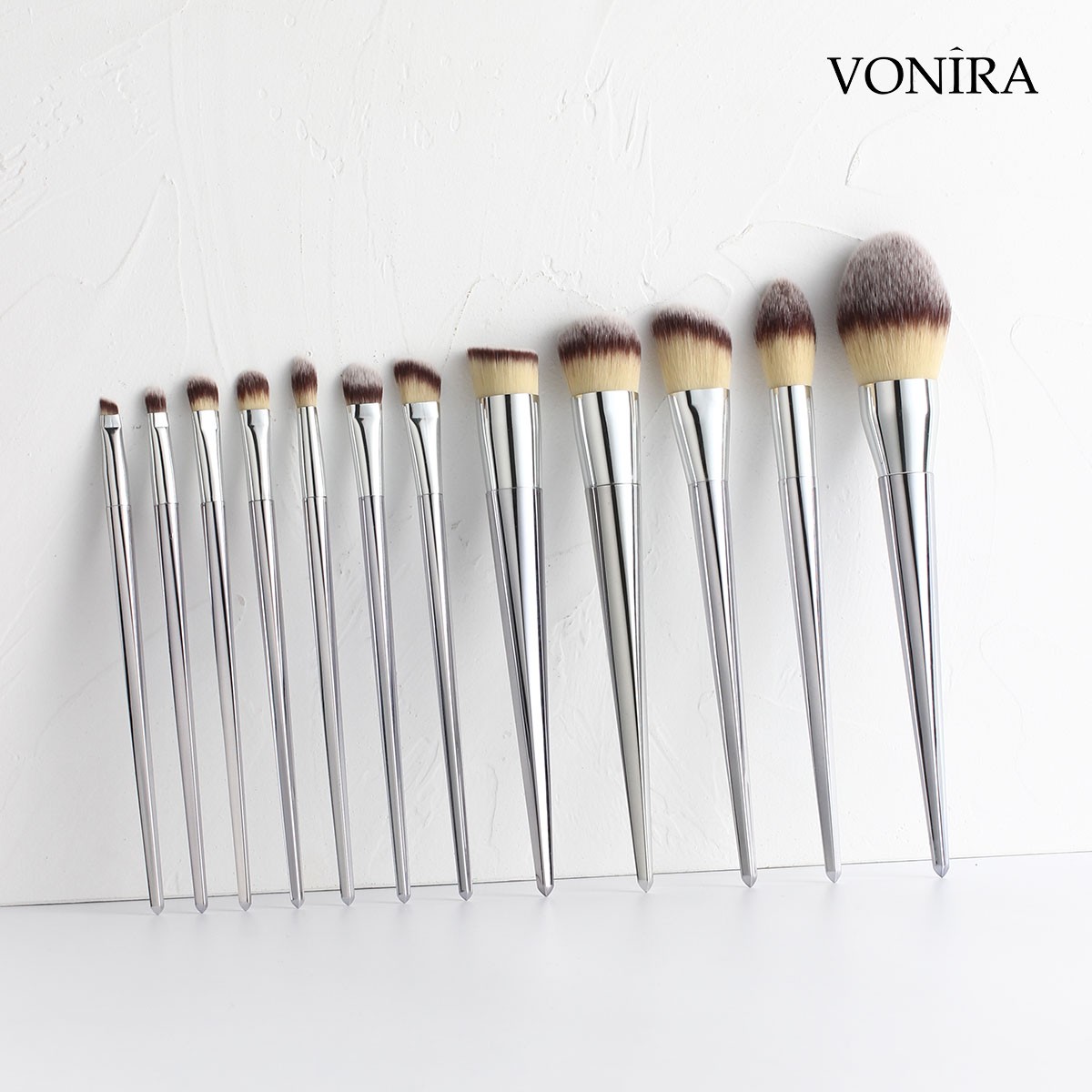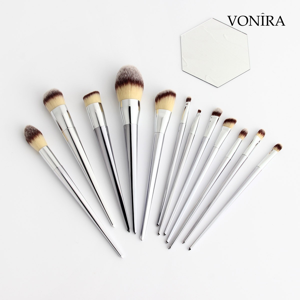 Product Name: Vonira 12pcs Professional Makeup Brush Set With Shiny Silver Metalic Color
