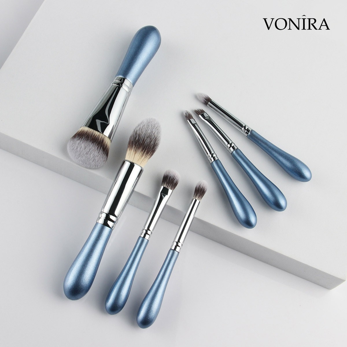 Vonira Brand New Mini Travel Makeup Brush Kit Vegan Make up Cosmetic Brushes Kit Private Label High Quality 7 Pieces details