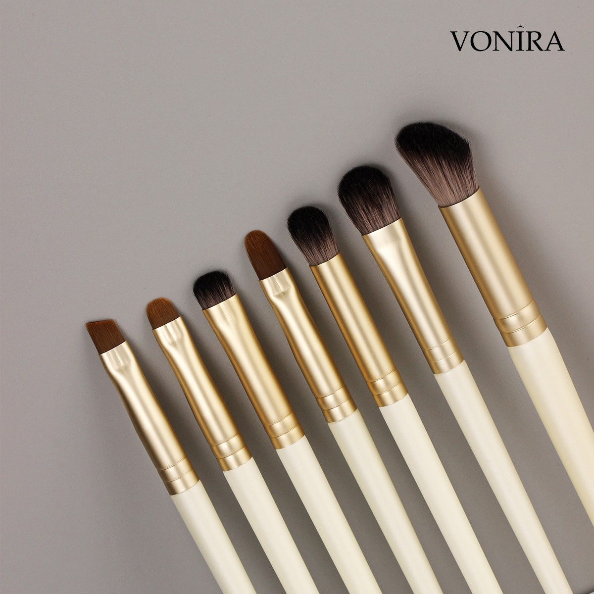 Enhance your makeup experience with the Vonira Beauty Professional Face & Eye Brush Set of 12. Designed for both beginners and makeup enthusiasts, this set offers a wide range of brushes to cater to all your makeup needs. The set includes: Powder Brush, Angled Foundation Brush, Highlighter Fan Brush, Angled Blush Brush, Flat-Top Foundation Brush, Lipstick Brush, Blending Eyeshadow Brush, Eyeshadow Brush, Angled Eyeshadow Brush, Diffused Crease Brush and Eyeliner Brush.