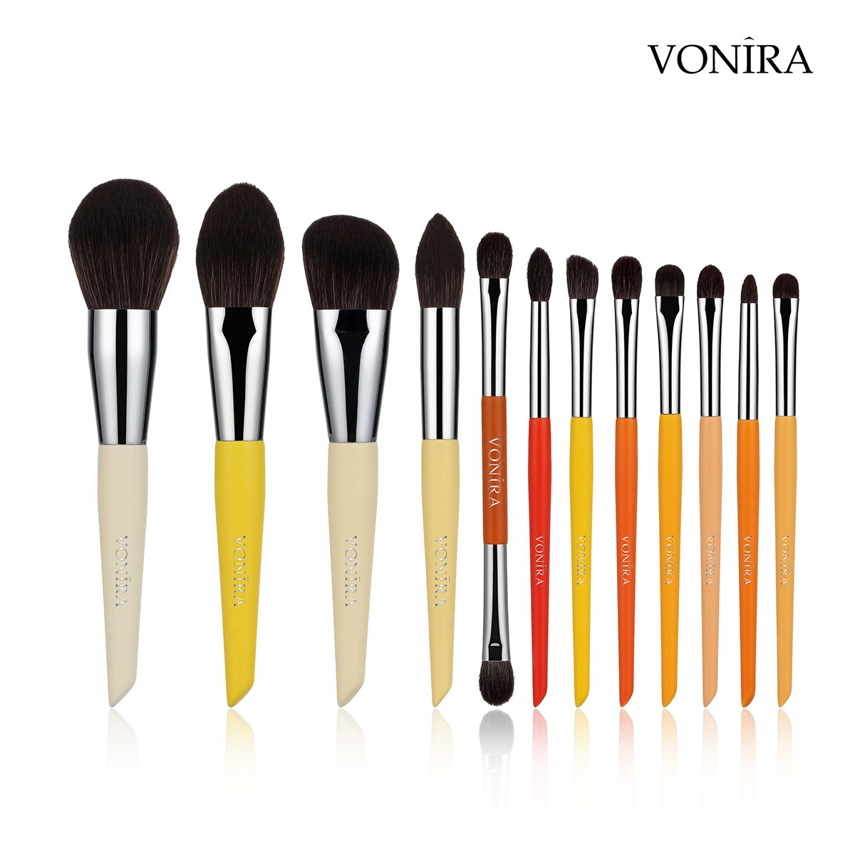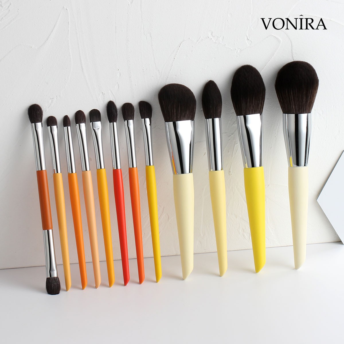 Vonira High Quality Colorfull Makeup Brushes 12 Pcs Vegan Hair Face Natural Goat Eye Professional Makeup Brush Set details